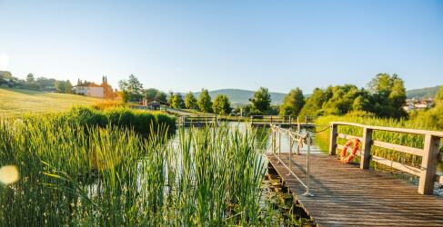 Freu dich im Sommer zusätzlich auf das hoteleigene Naturbad inmitten bayerischer Natur. Es liegt nur ca. 4 Fahrminuten bzw. 14 Gehminuten vom Hotel entfernt.