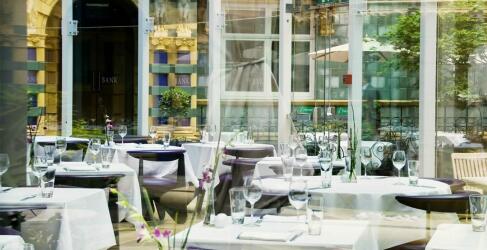 The centrepiece of the hotel is St. James Courtyard. An oasis in the centre of the city: with dark green tiles, numerous green plants and a relaxing fountain, the restaurant welcomes you with delicious dishes from lunchtime to evening.
