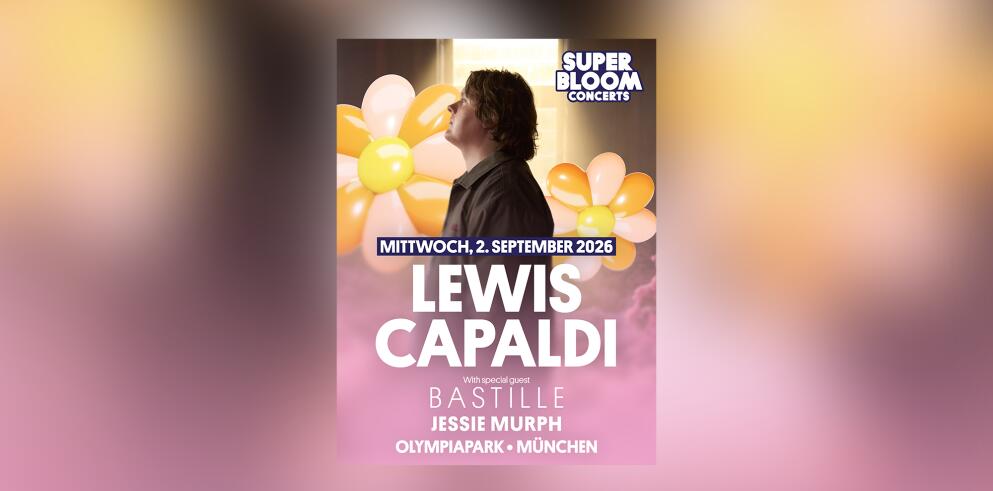 Am 02. September 2026 werden die Superbloom Concert Days im Olympiapark München zum emotionalen Highlight des Festival-Sommers. Mit Lewis Capaldi als Headliner und Bastille sowie Jessie Murph als Special Guest erwartet dich ein Abend voller großer Gefühle, Mitsing-Momente und moderner Festival-Energie – von 19:00 Uhr bis 23:30 Uhr mitten im Herzen Münchens.