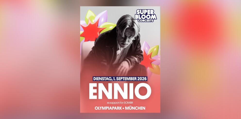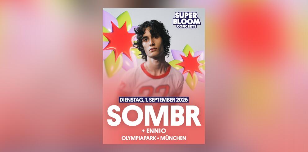 Am 01. September 2026 werden die Superbloom Concert Days im Olympiapark München zum elektrisierenden Highlight des Festival-Sommers. Mit SOMBR als Headliner und Ennio als Support erwartet dich ein Abend voller Indie-Vibes, Mitsing-Momente und moderner Festival-Energie – von 19:00 Uhr bis 23:30 Uhr mitten im Herzen Münchens.