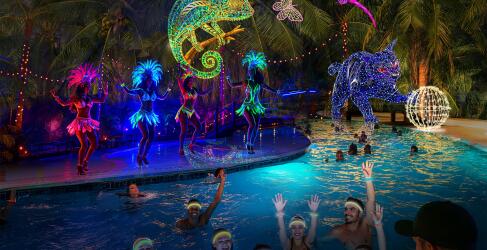 Leuchtende Tropen: Vom 06.12.2025 bis 15.02.2026 erstrahlt das Tropical Island in bunten Farben und hält leuchtende Highlights wie die Sambashow mit Lichtelementen, kunstvolle Lichtfiguren oder die Rave the Wave Glow-Party bereit – und das Beste? All das ist bereits in deinem Ticket inklusive!