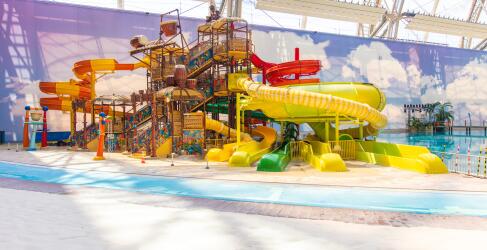 - Mach dein Besuch der tropischen Welt mit einem Strömungskanal, mehreren Whirlpools und zwei unterirdische Rutschen zu einem echten Highlight.