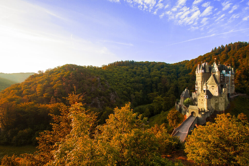 Herbst an der Burg Eltz: Im Herzen des Eltzer Waldes wird es märchenhaft – besonders zur Herbstzeit. Denn dann verleihen die warmen Nuancen der Laubbäume der Burg Eltz einen besonders romantischen Charme. Absolutes Highlight: ein Herbstspaziergang über den Wanderweg “Eltzer Burgpanorama”. Hier verschmelzen Naturschutzgebiet und der Anblick der majestätischen Burgfassade zu einer einzigartigen Atmosphäre, in der sich seltene Pflanzen und Tiere wohlfühlen.