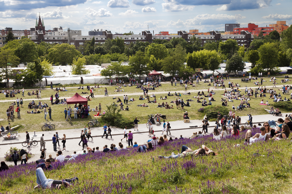 Nicht nur die Lage am ehemaligen Mauer-Todesstreifen zwischen den Bezirken Prenzlauer Berg, Mitte und Wedding macht den Mauerpark zu einer besonderen Attraktion. Wer seinen Sonntag Nachmittag auf dem sieben Hektar großen Freigelände verbringt, trifft Neu-und Altberliner, Urlauber, Kreative und Menschen aus aller Welt. Der Kultur- und Sprachenmix ist charakteristisch für den Park an der Bernauer Straße.
